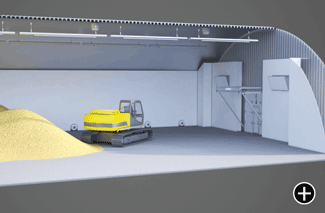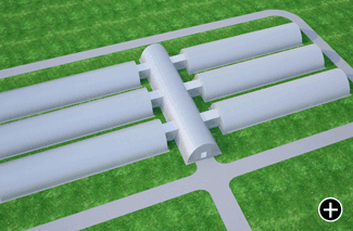 Обычно проект состоит из нескольких сооружений, которые включают моечно-сортировочную часть и от четырех до шести хранилищ. Оптимальный размер составляет 83 х 18 м при высоте сооружения 7,2 м исходя из энергоэффективности, обслуживания и цены.