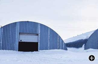 1. Самонесущий арочный ангар на винтовых сваях, оснащенный герметичными воротами.