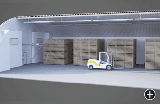 К существующей системе вентиляции при контейнерном хранении дополнительно устанавливаются в верхней части хранилища охладители. Также рекомендуется разделить хранилище на отсеки длиной не более 30 метров для обеспечения быстрого равномерного охлаждения при закладке и поддержания стабильной требуемой температуры в процессе всего периода хранения.