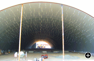 Изготовление ангара происходит непосредственно на месте установки. Продолжительность возведения сооружения площадью 1500 кв.м один месяц. Мы можем построить ангары шириной от 3 до 21 метра, высотой от 2,5 до 9 метров, при неограниченной длине. Они выдерживают снеговую нагрузку до 180 кг/кв.м, скоростной напор ветра до 150 км/час. Сейсмичность конструкции 9 баллов.